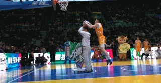 他的第二扣还是飞人动作,这一次一口气飞跃5人完成双手反扣,但只拿到49分,给出9分的是中国篮球名人堂女篮成员李昕。
