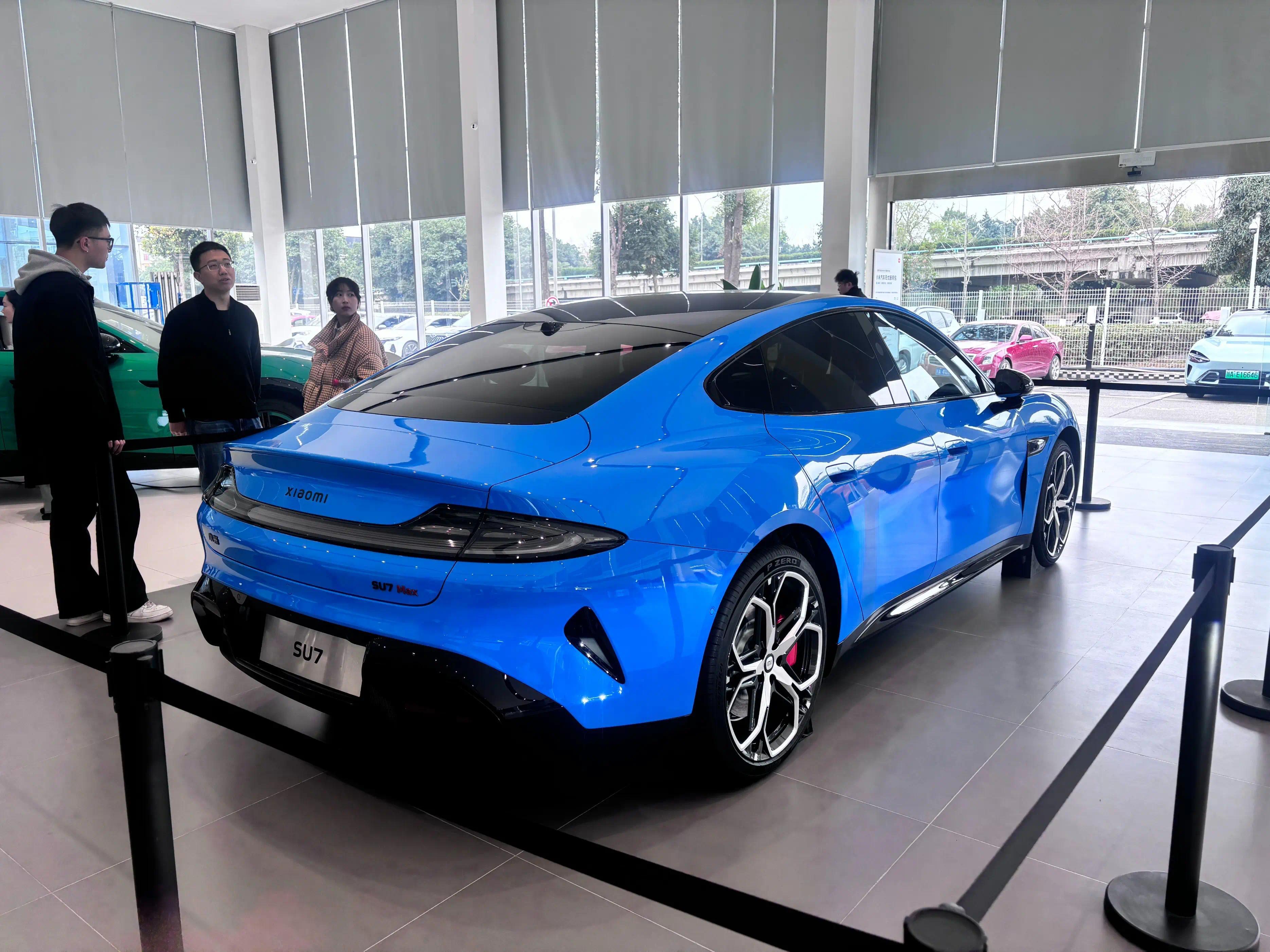 店内展车是一台Max版,外观为卡布里蓝新配色,内饰为黑色。目前内饰和试驾都暂未开放,须等到4月正式上市后才可体验。即便如此,店内仍有几组年轻客户在看车。销售表示,当天他已接待了三四组客户,可见热度依然很高。