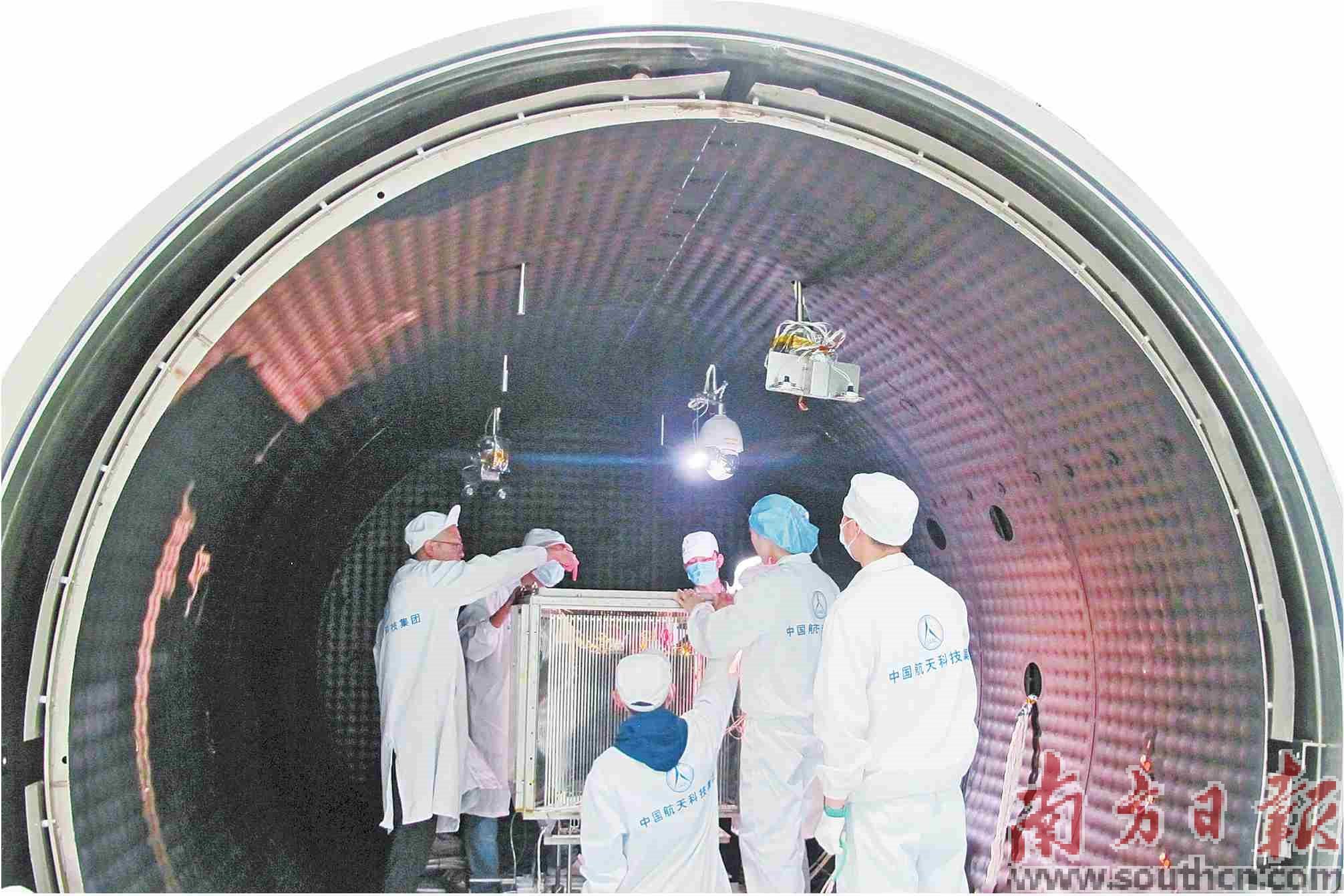 深圳科研人员在装配卫星。朱洪波林艳瑾摄