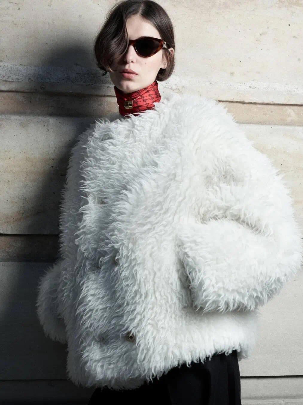 Celine为基础色注入不羁的灵感,Hedi Slimane构建的色彩世界是将巴黎的知识分子色调与青年亚文化的巧妙融合。如果是简单的白,那么试试运用到环保皮草或富有细节的针织衫上,令单一的色彩也能展现不同的态度。