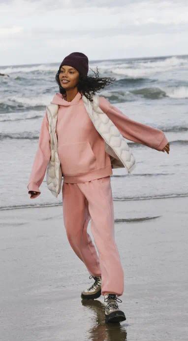 lululemon的冬季装备亦是如此——将茶花粉注入冬季面料,柔软亲肤的Steady State™女士超宽松款卫衣套装为冬日视觉及体感皆增添温暖,天生温柔的粉色也因廓形增添了些许boyish气质。